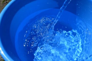 ①バケツやクーラーボックスなどの水の溜まるものを用意する